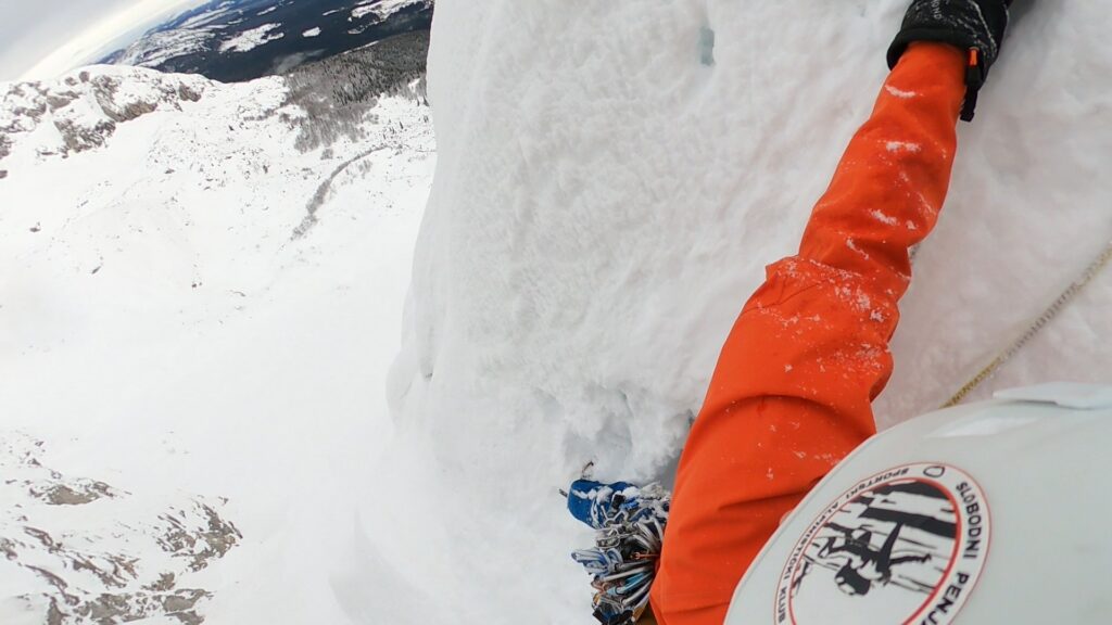 Dolazimo poslije 3 dužine do previsnog sniježnog skoka.