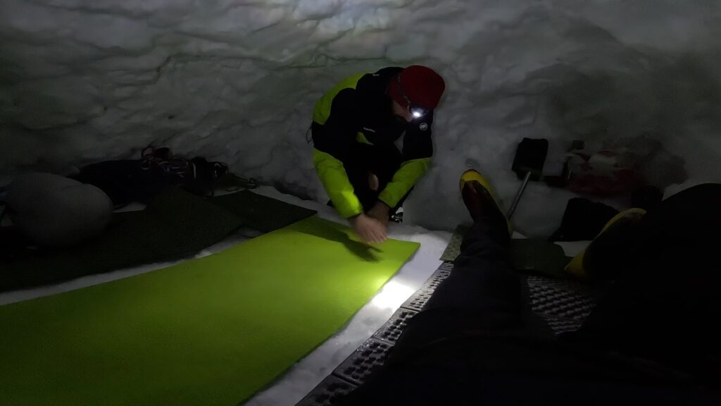 Nedostajao mi je taj komfor koji pruža sniježno sklonište, u odnosu na prethodne avanture u šatoru. Da se može sva oprema odložiti, uključiti gorionik na posebnoj sniježnoj polici bez bojazni da se nešto progori ili prospe, i sve radnje prije spavanja obaviti sjedeći.