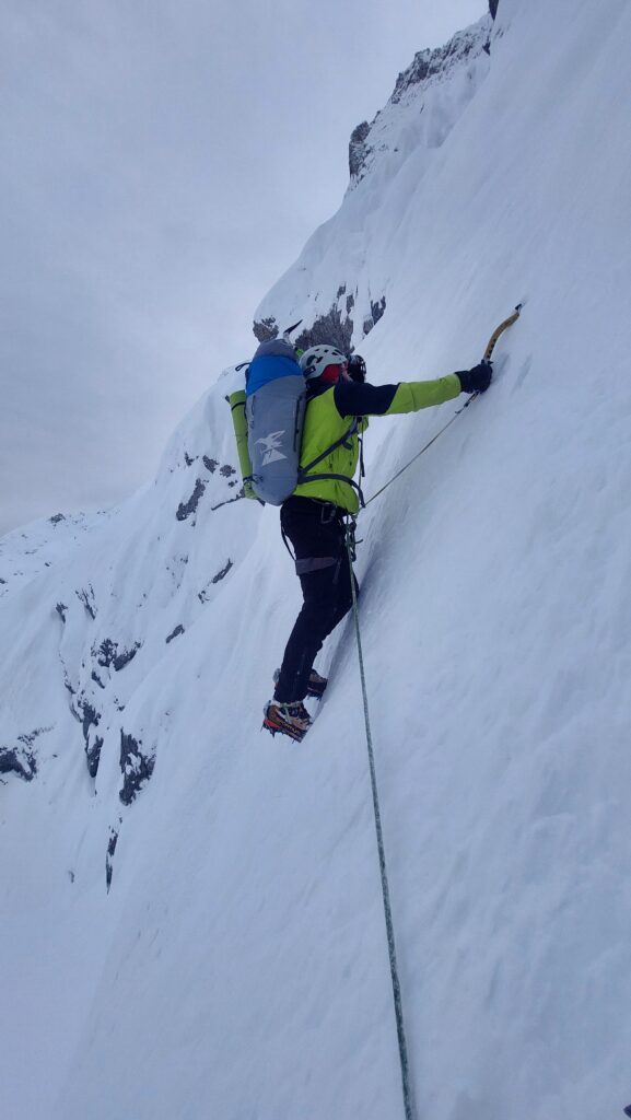 U nastavku penjemo i dalje po strmim sniježnim površinama prosječnog nagiba 70°.