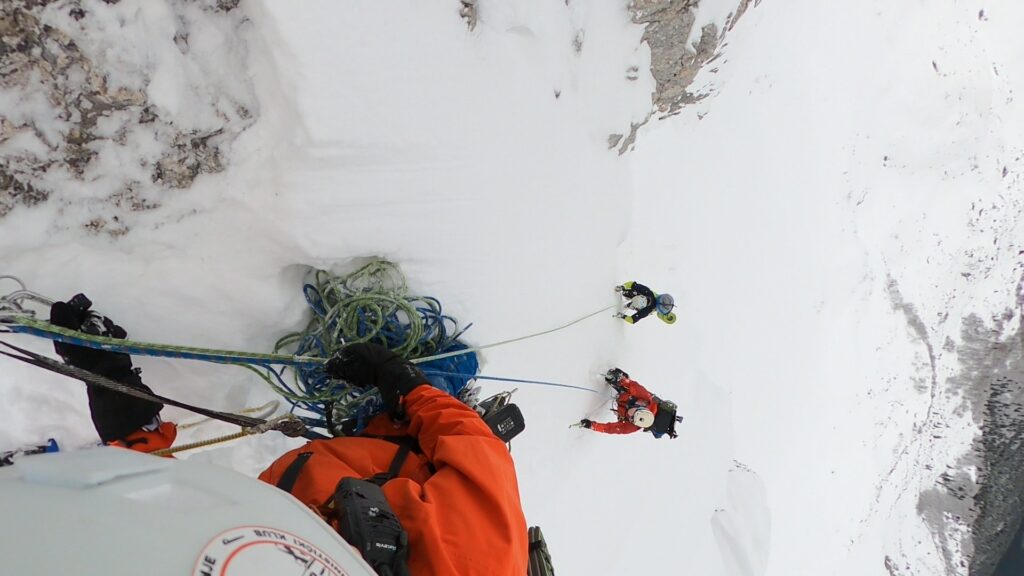 Tokom penjanja prema njoj, sa 50m udaljenosti dijagonalno od nas u snijegu lako je bilo uočiti prepoznatljivi izgled drona zaboden elisama u sniježnoj vertikali.